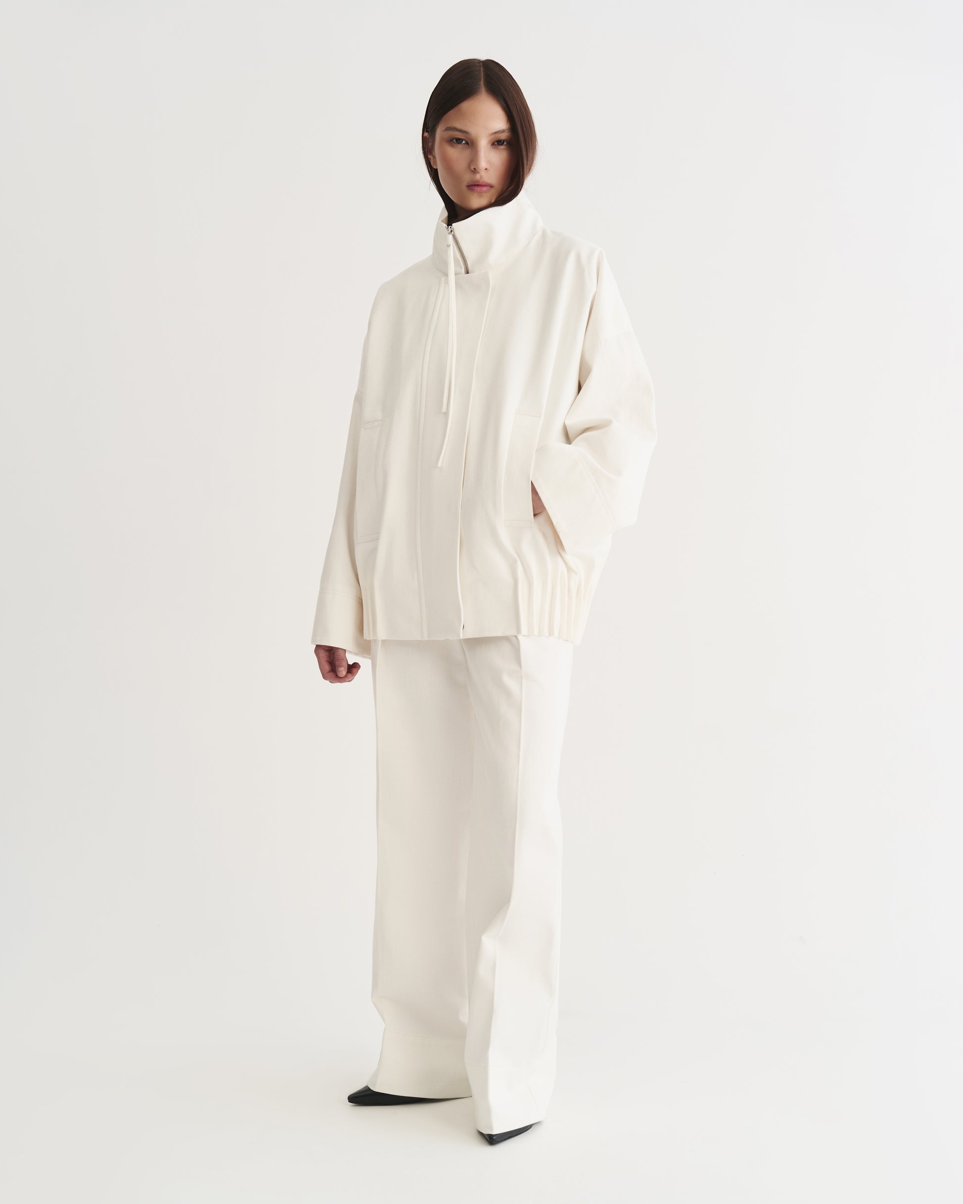 Джинси Dune з деніму відтінку айворі мають м’яку й водночас структуровану посадку та витягнутий силует. Легкі зборки біля кишень створюють делікатні фронтальні лінії, додаючи моделі м’якої виразності. Акуратний широкий підгин формує чистий контур і завершений вигляд. Поєднуйте з бомбером Dune для лаконічного, сучасного образу.